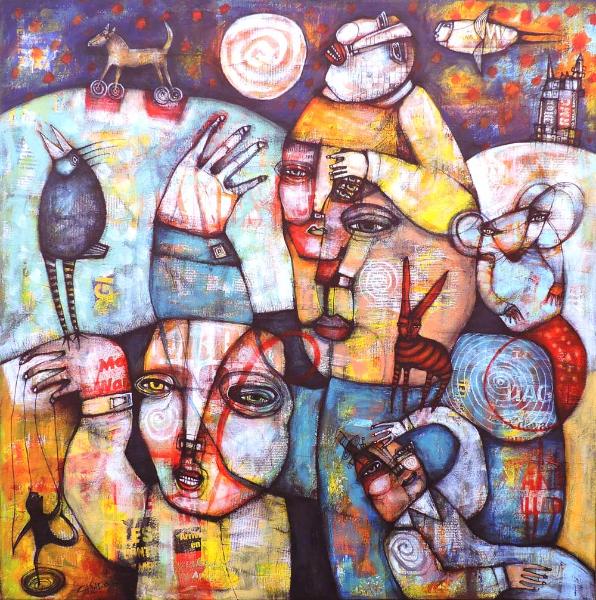 acrylic and collage on canvas 31.5"x31.5" - 80x80cm