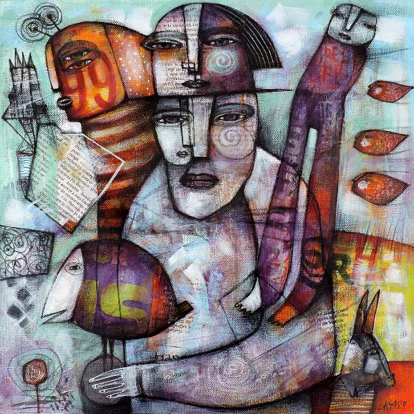acrylic and collage on canvas 12"x12" - 30x30cm