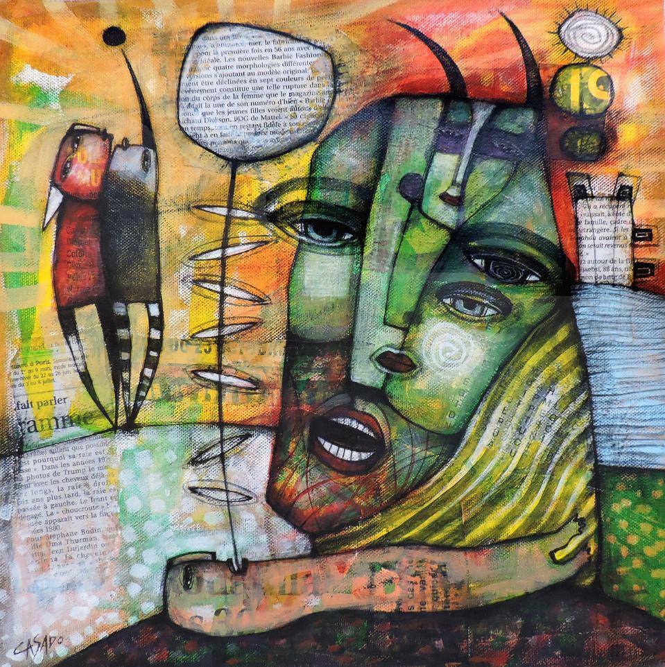acrylic and collage on canvas 12"x12" - 30x30cm