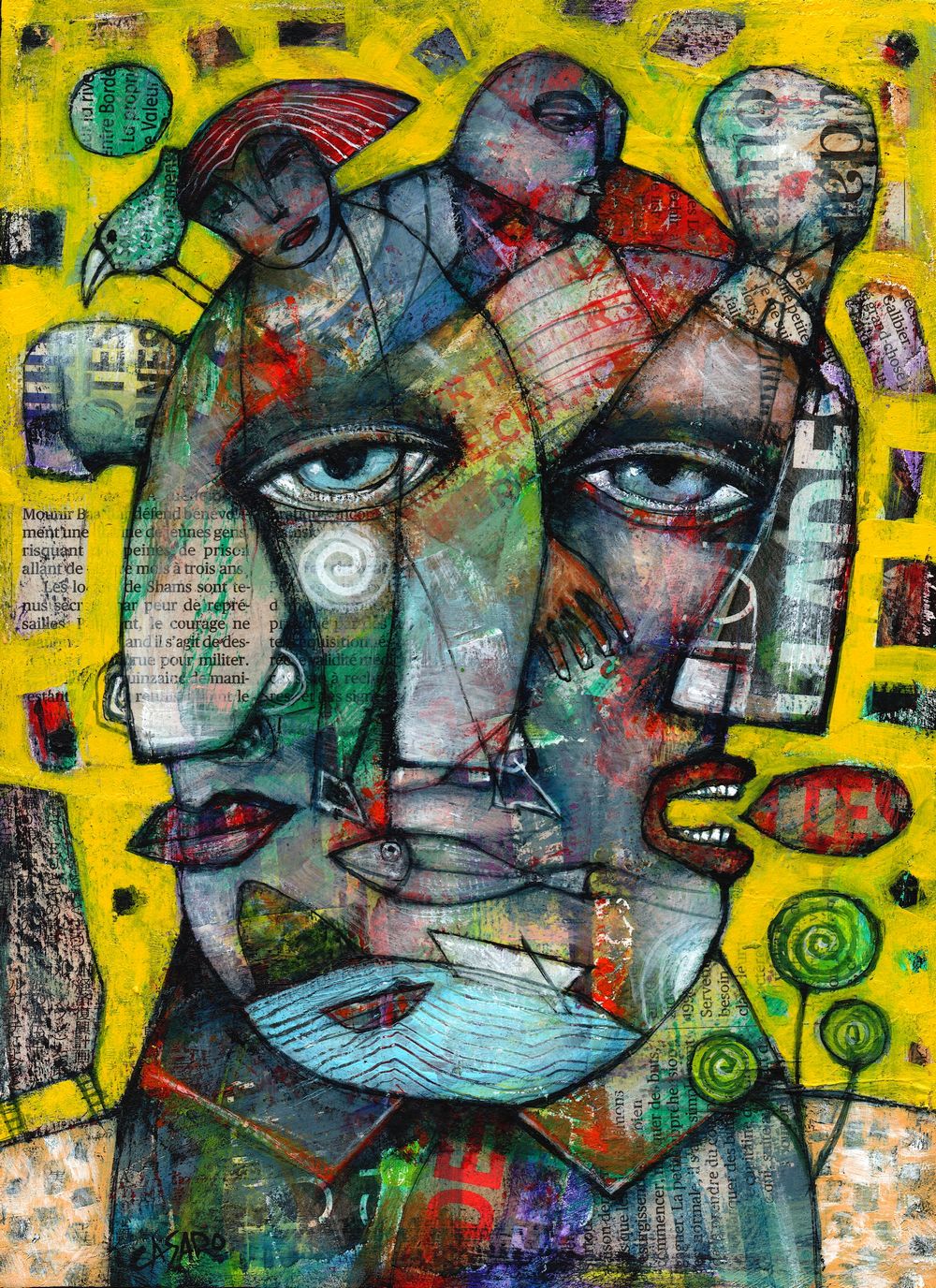 - acrylic and collage on w