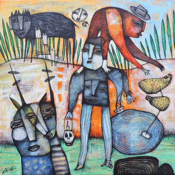 acrylic and collage on canvas 19.5"x19.5" - 50x50cm
