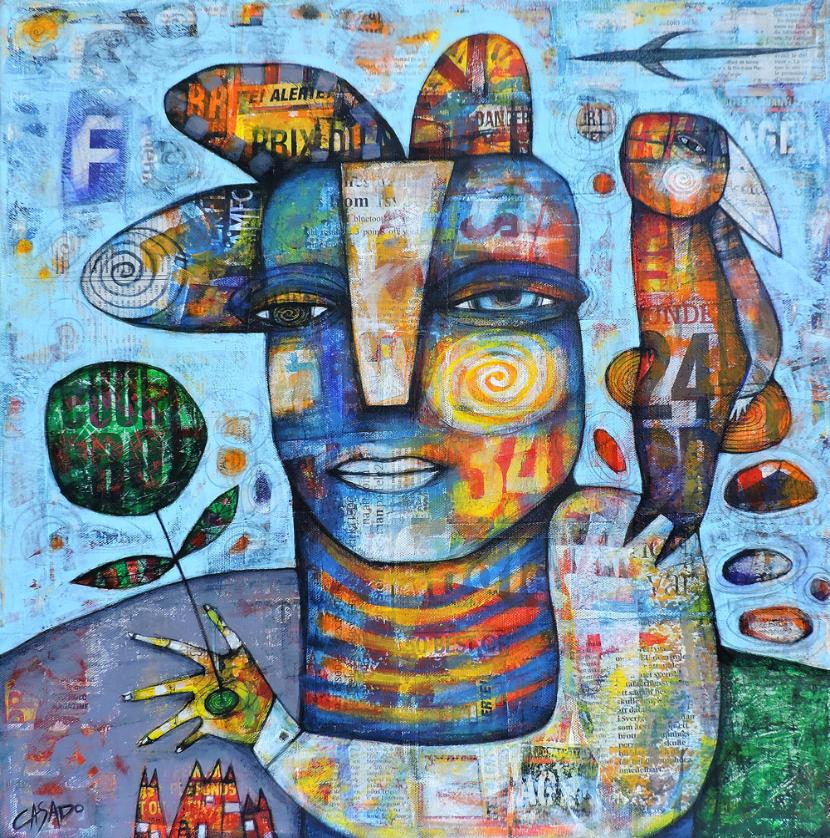 acrylic and collage on canvas 19.5"x19.5" - 50x50cm