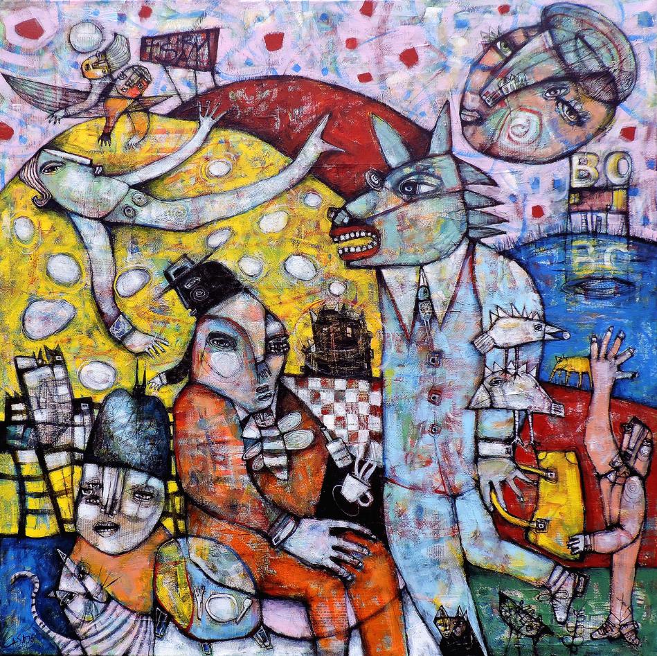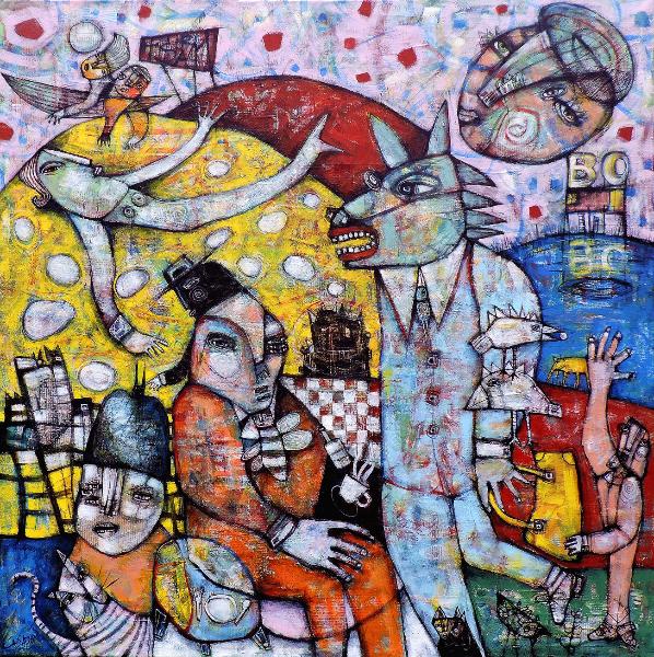 acrylic and collage on canvas 39.5"x39.5" - 100x100cm