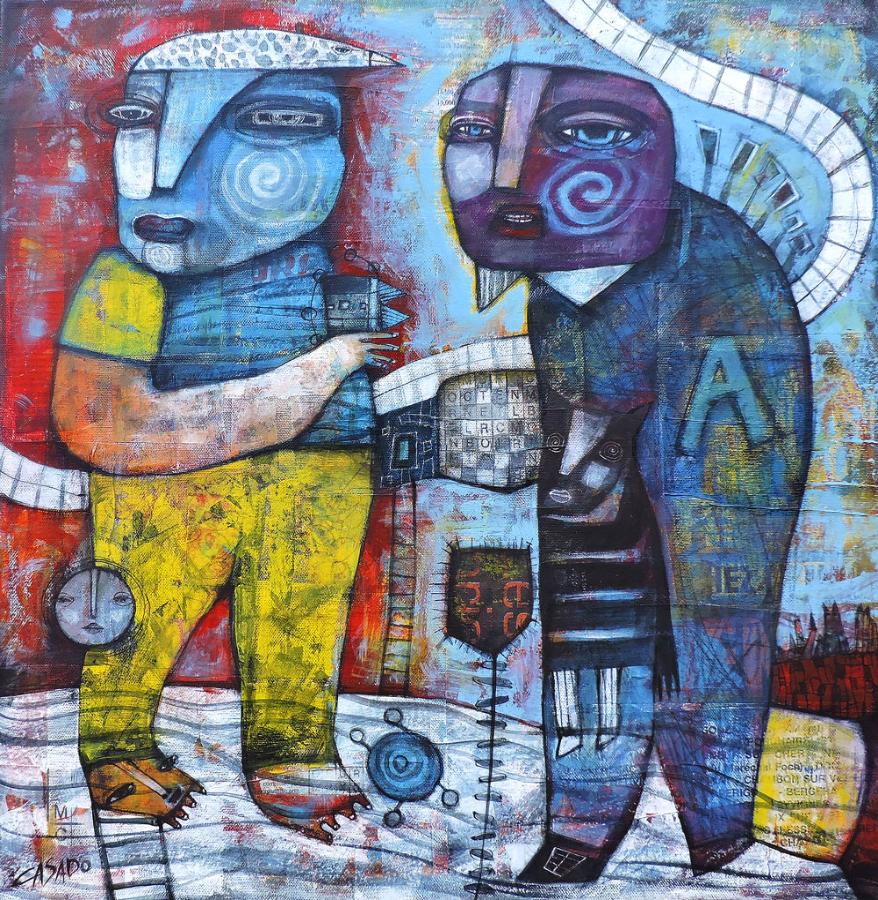 original, acrylic and collage on canvas 19.5"x19.5" - 50x50cm